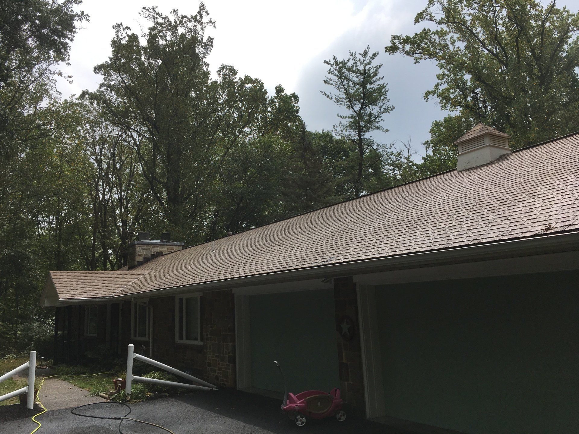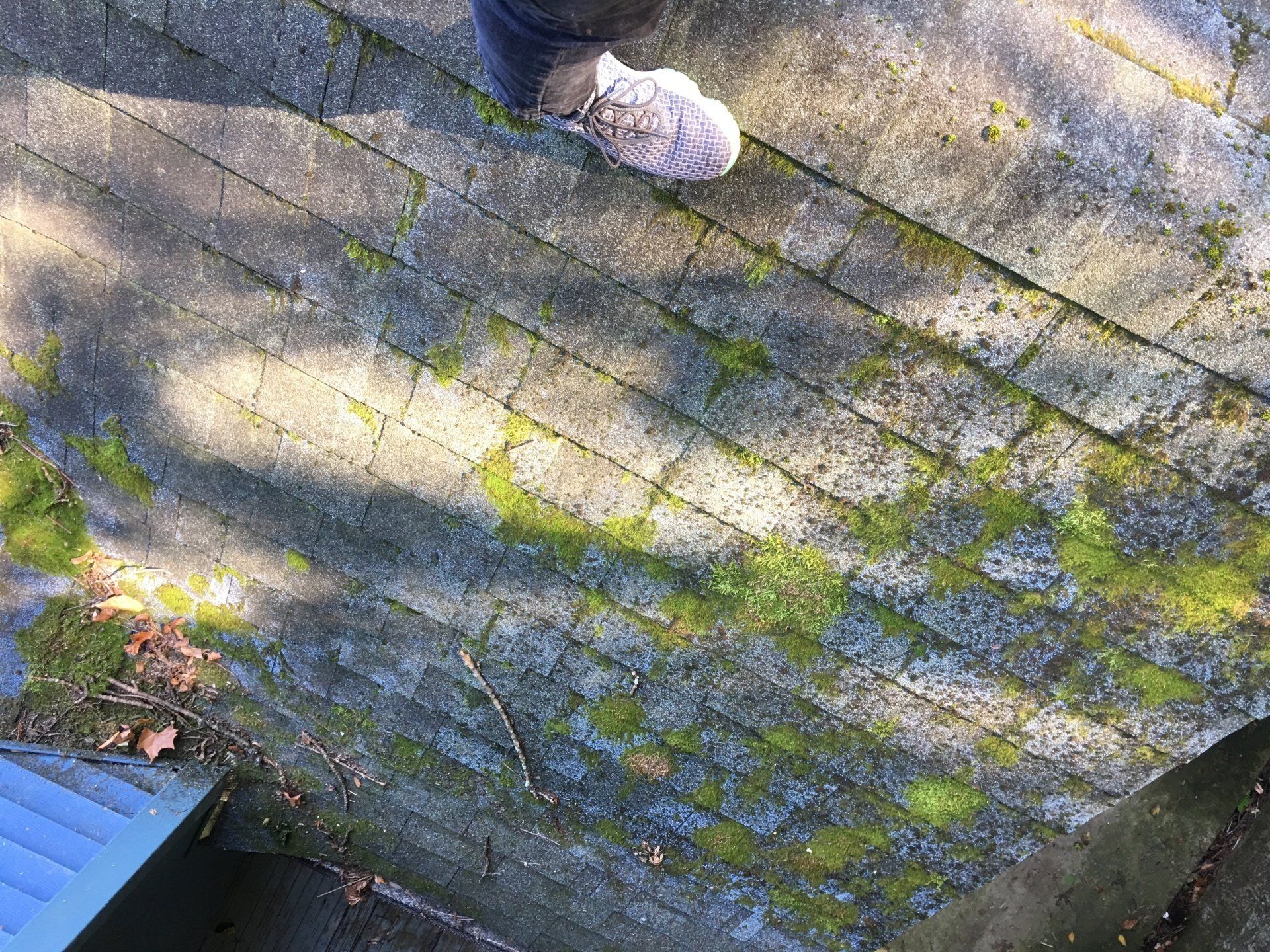 Our roof cleaning process is similar to our house washing process. We use a safe, low pressure cleaning solution that removes black streaks, algae, moss, and lichen.